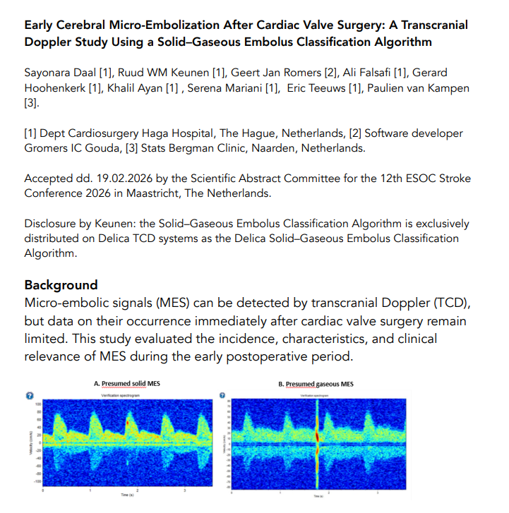 The scientific TCD (Advanced HITS dDetection)study has been accepted for presentation at the prestigious 12th European Stroke Organisation Conference,...